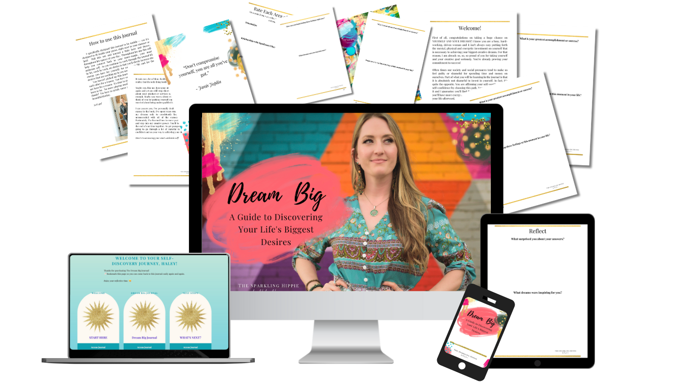 Dream Big: A Guide to Discovering Your Life's Biggest Desires - Over 100 full-color PDF pages in a beautifully designed digital journal meant to take you on a journey to finding your most authentic self!